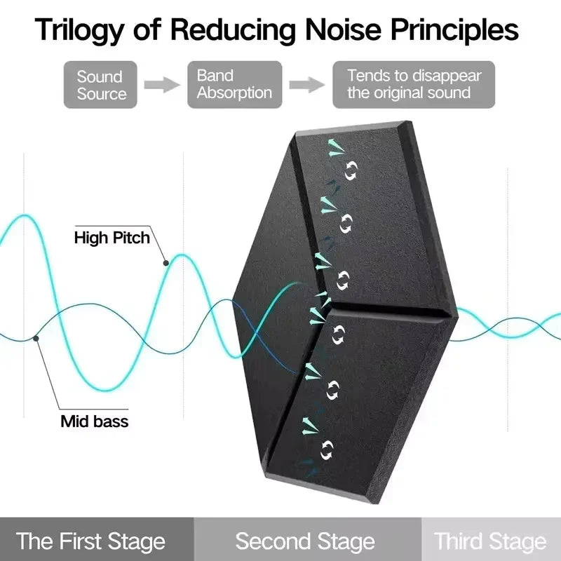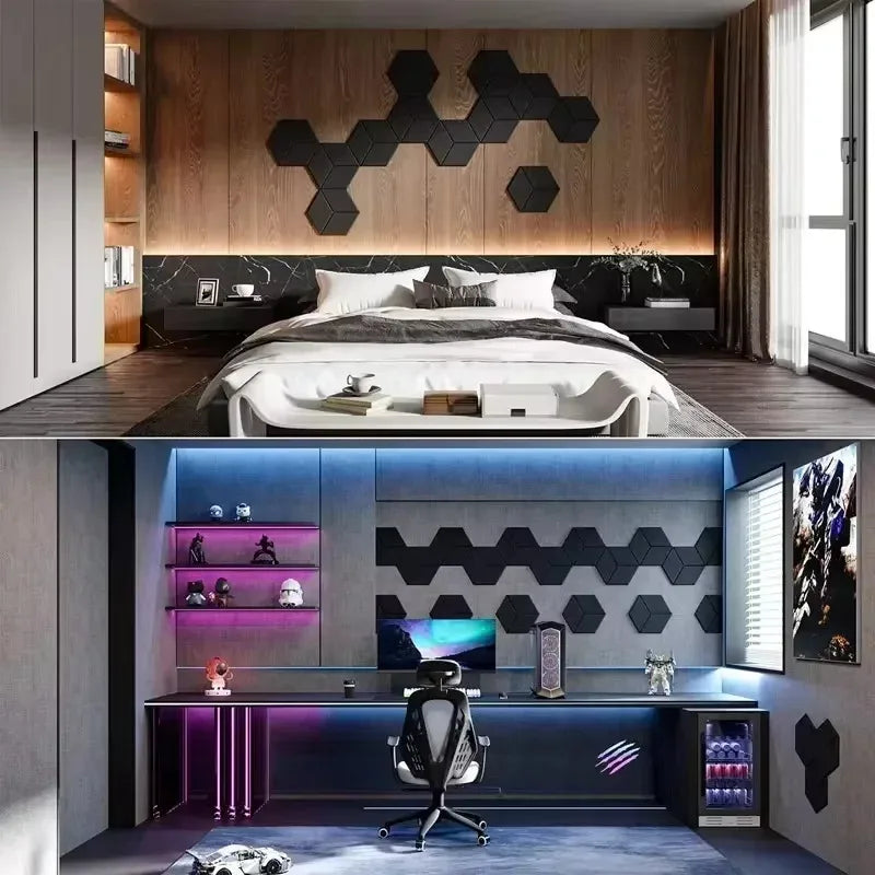Decorative appeal: The unique Y-shaped sound insulation panel features a beveled edge design that doubles as art or decoration.They blend seamlessly into your home style, adding functionality and aesthetics