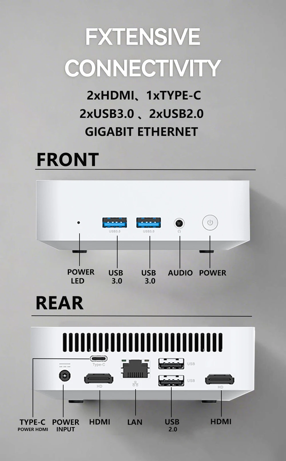 - Compared to others mini pc, the Intel Processor higher TDP and better performance under long load periods.