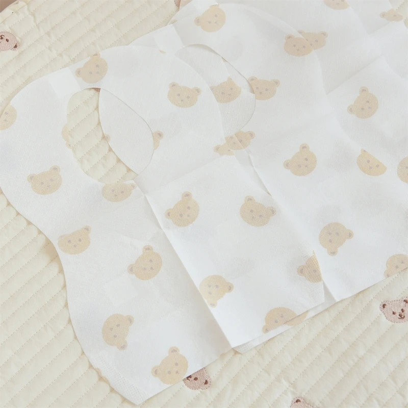 Made of high-quality non-woven fabric and a waterproof PE-film, soft and skin-friendly, breathable, these bibs are durable and leak-proof.