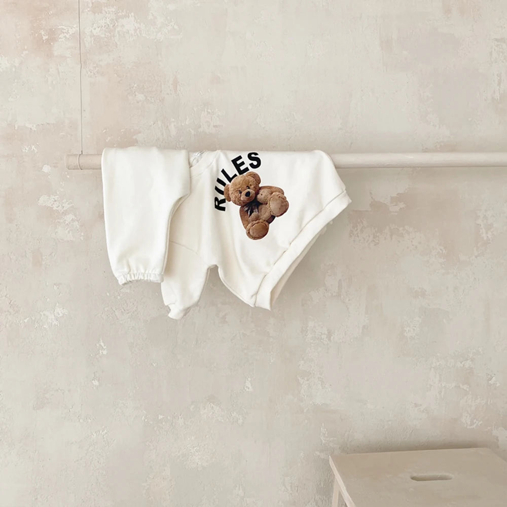 Korean 1-4Y Boys Outfit Set Toddler Girls Clothes Set Fashion Sweatshirt Tops +White Pants Spring Cartoon Bear Kids Clothes Suit