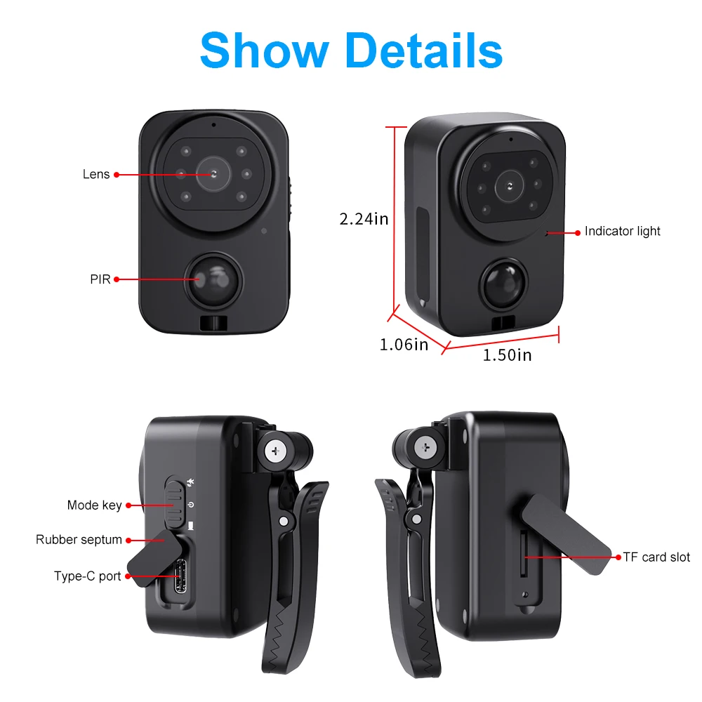 - PD01 Waterproof Mini Camera Motorcycle and Bike Recorder Sport DV NO-APP Pocket PIR Small Police Security Wearable Body Worn Cam