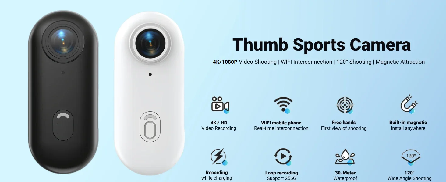 · 1.25 OZ (35.7G) & THUMB SIZE: The H88 tiny action camera is so compact it’s smaller than your thumb and weighs just 1.25 ounces (35.7 grams). You can mount it on your body without even noticing it’s there, blending seamlessly with you. It offers a whole new amazing experience.
