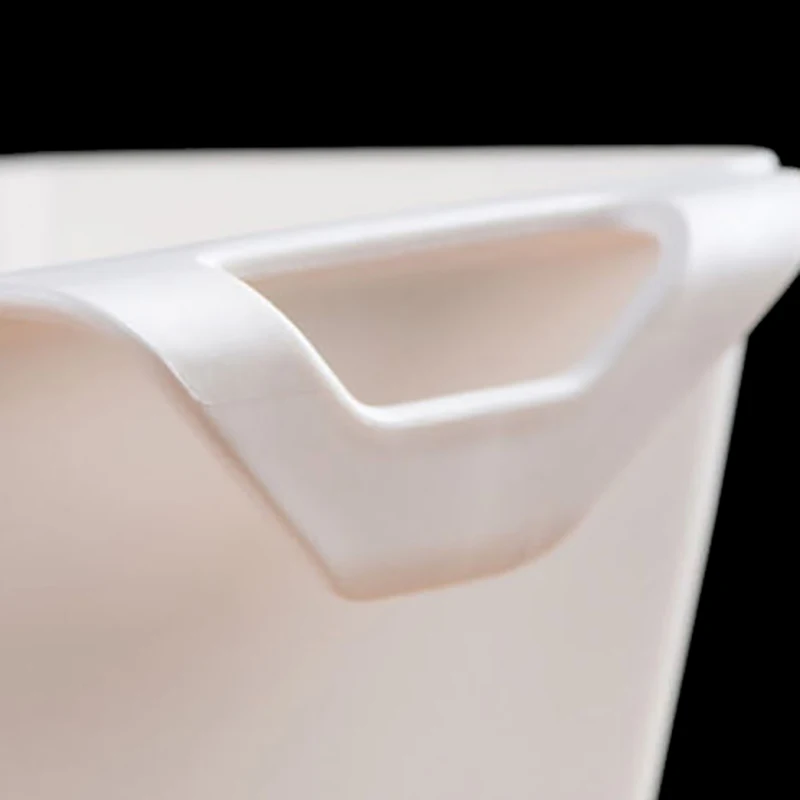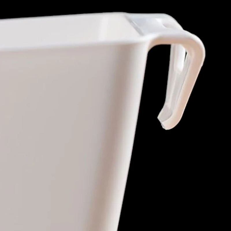 5.The plastic bin is designed with hanging buckle, it can hang up on hooks, door back, cabinet edge, rod and any other places, making storage more convenient.